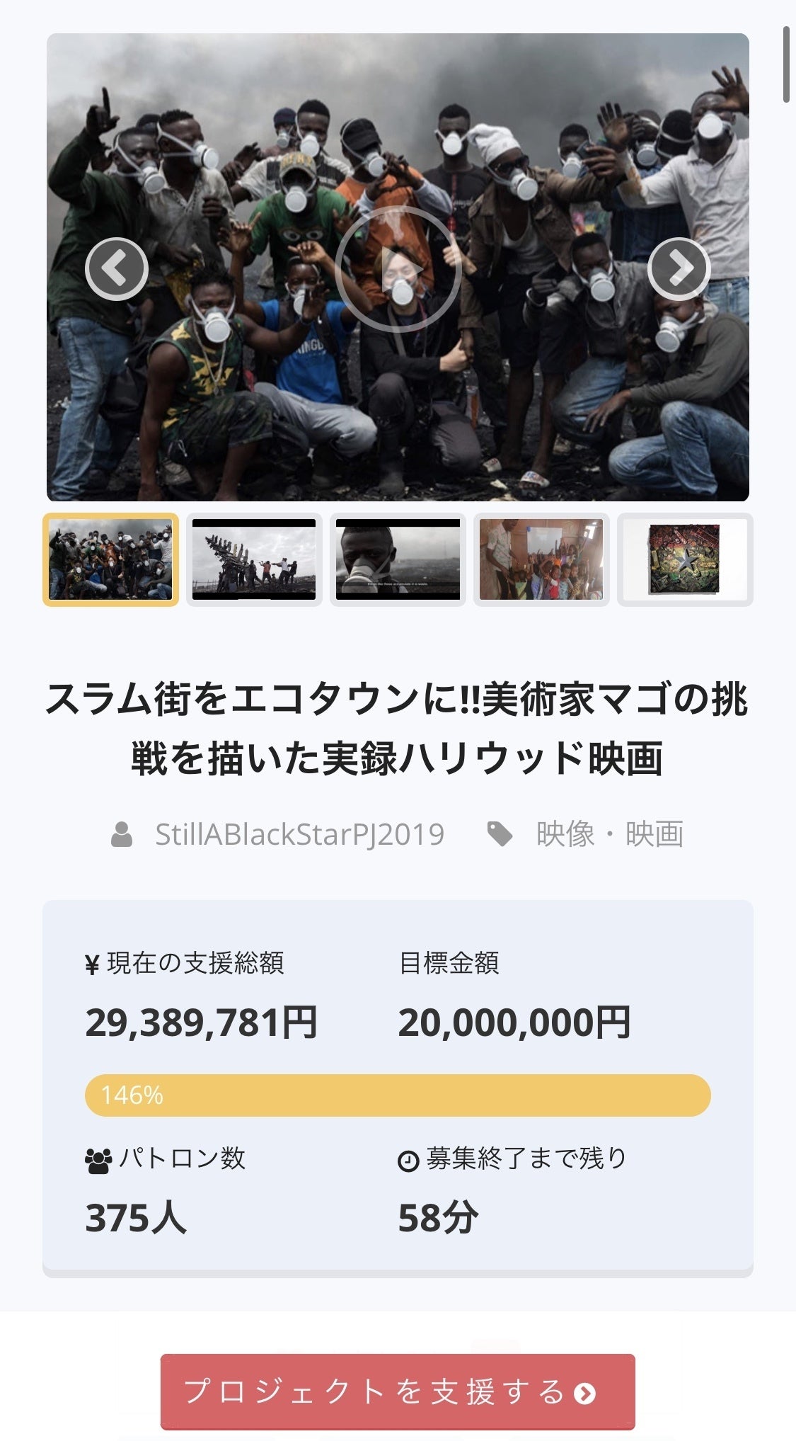 それどころか3000万円の大台が見えてきた! 本当に皆様に感謝いたします! あと55分最後までお付き合い宜しくお願いします。 映画公開これは実現が見えてきました、本当にみんなでこの映画を観れる様に、そしてガーナの問題が解決することを祈って!