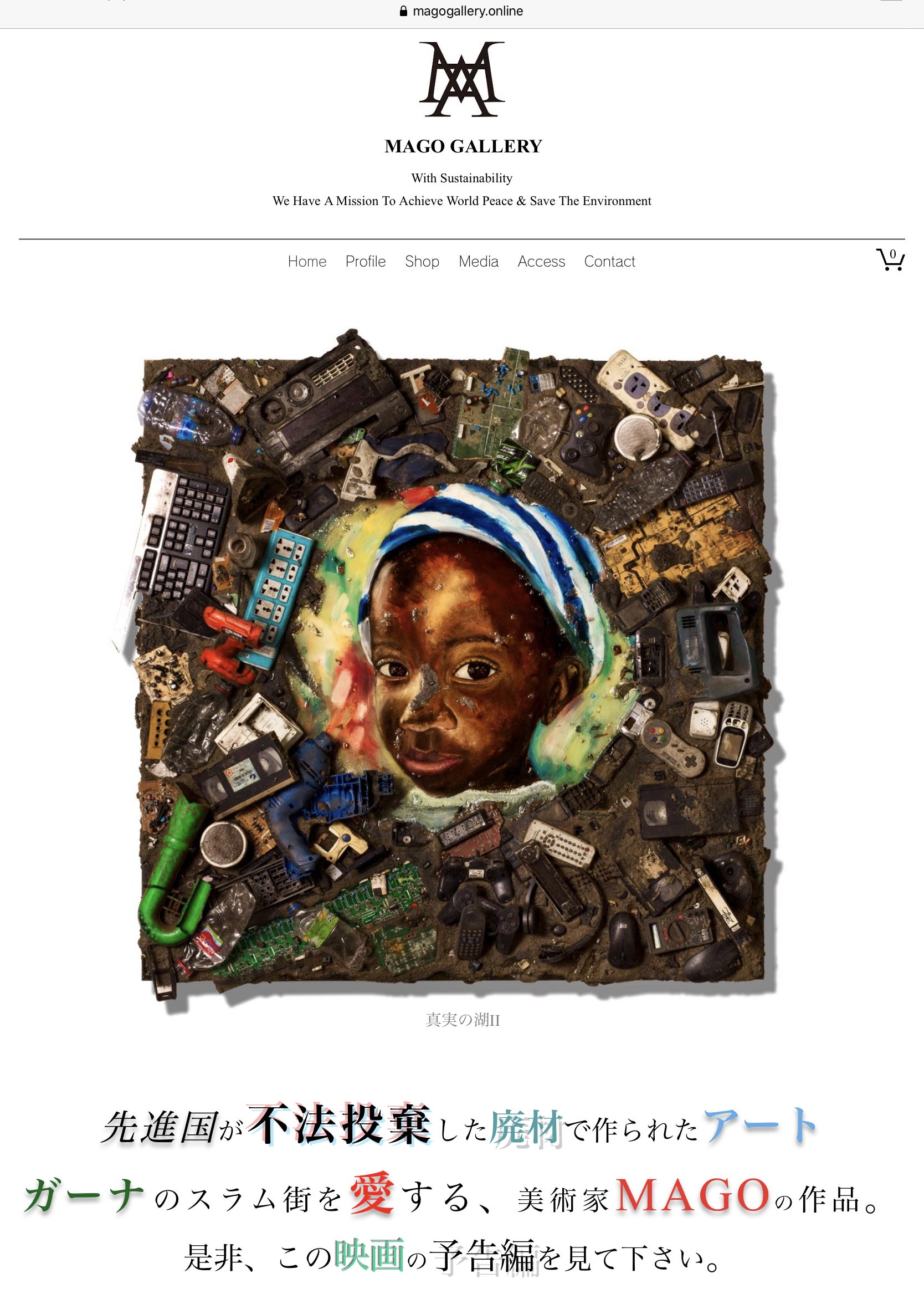 拝啓コロナ様。〚MAKE NEW NORMAL第一弾〛新しいシェアリングエコノミーを詰め込んだMAGO GALLERY ONLINE オープン!!https://www.magogallery.online/★MAGO Gallery グループは今までの経営形態を変えてこのパンデミックに立ち向かいます。 きっとこんな世の中だからこそ、変わって行かなければならない事がある、僕は90%以上絵描きな日常をさせてもらっています。 残りの10%はガーナのスラムを救うための強固な組織づくり、つまり、「経営」に携わっています、現在僕のソーシャル活動を自由にさせてもらっているのは紛れもなく、日本に二店舗展開している、MAGO GALLERYのお陰であり。彼らが専属ギャラリーとして、一矢報いず僕のガーナの夢を応援してもらっているからなのです、そんなギャラリーオーナーやギャラリストから悲痛の叫びが聞こえてきた、このコロナショックにどう立ち向かうか? 僕もMAGO GALLERY もコロナの打撃を受け、個展の中止やギャラリーへの来客も大幅に減っています、先月180点ほど売れていた絵画も今月は現時点でたった1枚、これを暗示するのは死か? 軒並み同業者の画廊も閉鎖し、芸術界でも閉塞が広がる中、このままアートは死んでいくのか? 我々MAGO GALLERY グループ一同も死んでいくのか?これらの緊張が一か月続きました、だけど、1つだけ断言する。「アートは絶対に死なない、かならずガーナに100億円を贈る。」 我々のこれからの未来を引率する大きな船のフラッグの様にアートは我々を希望の新天地まで導いてくれる。「アートは人を救うためにある。」僕はこの船の乗組員として大きなかじ取りを引き受けました、コロナに負けず、僕の持つアートの意味を、そして僕の夢を支えてくれているギャラリーたちを助ける! そして、僕たちを支援してくれてるいるコレクター様達との絆をより強くしたい!そんな思いでWEBに特化したアート会社「星に願いを」を新設した、地球、お月様、そしてガーナの黒い星に願いを、という意味がある。その第一弾として、今回「MAGO GALLERY ONLINE」というオンラインサイトをスタッフと朝から晩まで協議し、この一か月かけてたたき台を作り上げた、このサイトはLA、東京、大阪、滋賀で展示販売している僕の作品の閲覧、購入が全世界ででき、シェアリングエコノミーを導入、他店舗の絵画、売り上げも加盟店でシェアできる新しい試み、対面接客なしでの販売も可能で、それでも原画を見たい場合は完全予約制にして、人数をしぼり距離を取って対応できるようになった、加盟店は全加盟店舗の商品にアクセスできるようになり、携わった店舗と利益分配ができる仕組みだ、こんな非常事態だからこそ、三本の矢を一つにまとめより強固にしこの非常事態を乗り切る、そして生き残る。「ARTは絶対に死なない、死なせない、そしてガーナのスラムの彼らに100億円のリサイクル工場を建てるまで負けてたまるもんか!」その熱意でこの新しいオンラインギャラリーをオープンさせます、順を追って全世界に散らばっている1000を超える僕の絵画の閲覧、売買が可能になるように動いてきます。そしてここでコレクターになって下さった方々と交流できるようなオンラインサロンを形成していく所存です。それは第二段へと続く!僕たちには世界平和と環境保全を実現するはっきりとした目標があります、売り上げ激減ですがこの危機に我々は立ち向かいます!是非皆さん新しいMAGO GALLERY ONLINE に来店ください、一切コロナの感染リスクはありません、僕のアートがどの新天地を目指しているかわかっていただけると信じています。買った人も、地球も、スラムの皆も幸福にできるアート作品と志しはここにあります!MAGO GALLERY ONLINEWe Have A Mission To Achieve World Peace & Save The Environment 美術家 長坂 真護