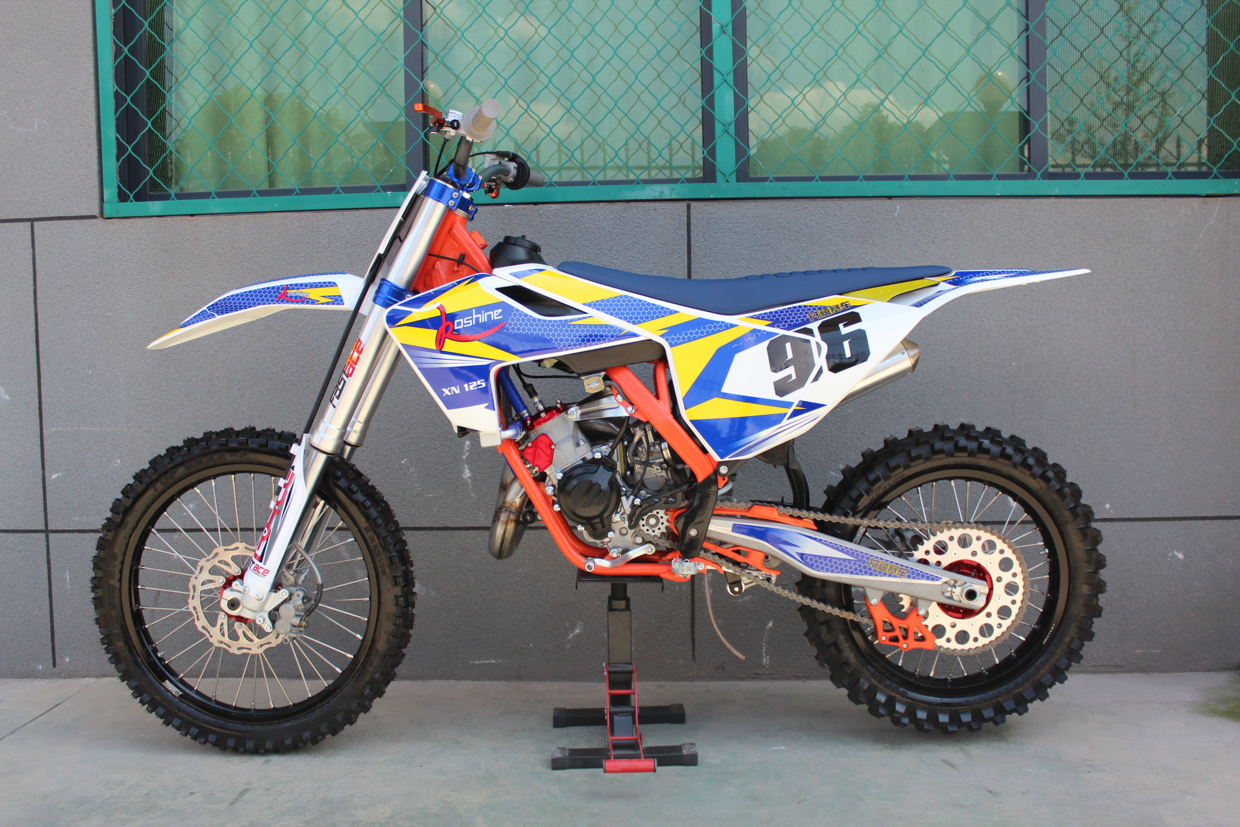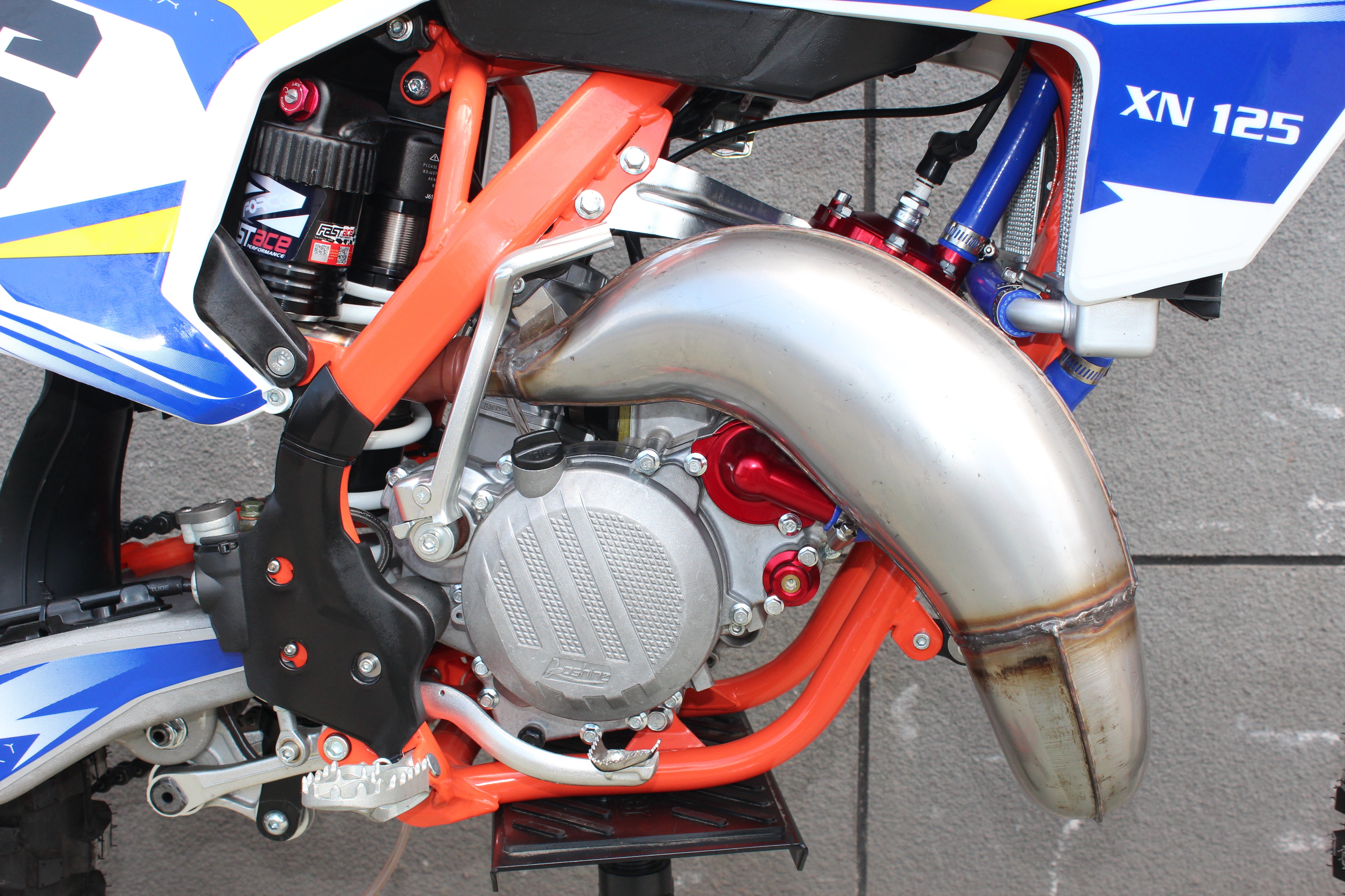 XN125は本格的なエンデューロ仕様のバイクです。すでにエンデューロの本場ヨーロッパで販売されていて、大好評を得ているモデルです。水冷2ストロークエンジンに高性能サスペンションを搭載しています。125ccですがトルクが太いため、初心者でも楽に乗ることが出来ます。半クラッチを多用する昔の乗り方はこのバイクには不要です。キックが非常に軽いので、女性でもらくらくエンジンをかける事が出来ます。オプションでセルモーターも追加できます。