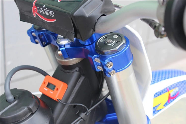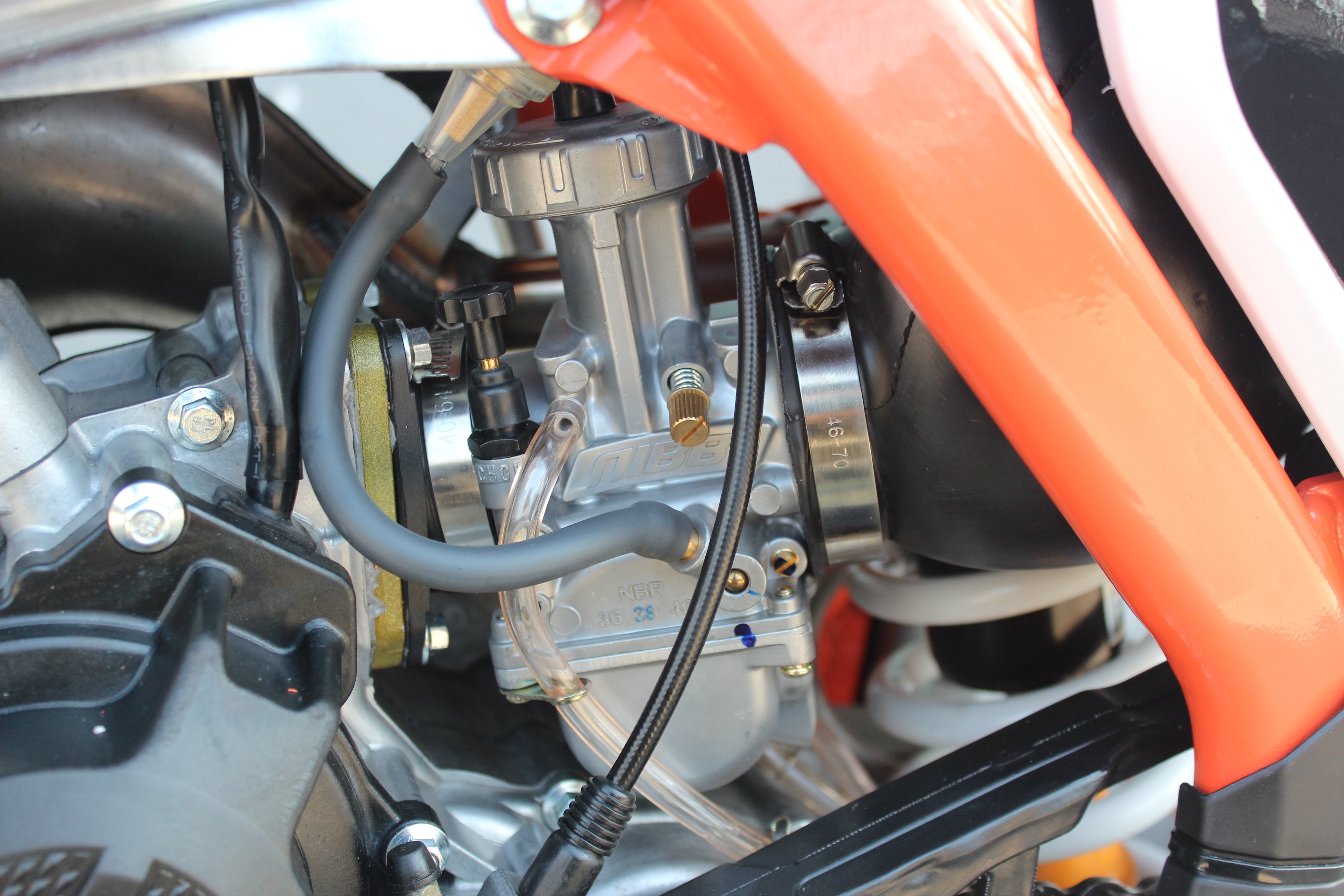 コンパクトな水冷エンジンは低速から中速にかけてトルクがあるので扱いやすい性格。キックは手でもかけれるほど軽いが、オプションのセルモーターをつければ、さらにらくちん。クラッチは日本製モトクロッサーと同じ部品を使っているので、信頼性・耐久性は十分です。(画像はスペシャルタイプ)
