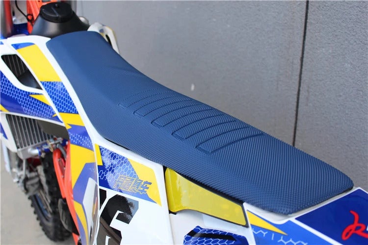 じつはこのバイクは、ハンドルガードとアンダーガードをつけるだけで、すぐにエンデューロレースに出ることが出来ます。一般の市販車のように手を加える必要はありません。その意味でも大変コストパフォーマンスがよいといえます。最近流行のハードエンデューロにも参加できる十分な性能があります。もしハードエンデューロに出る予定があるなら、セルモーターのオプションをお勧めします。