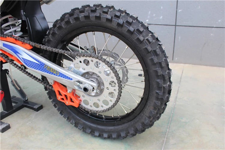信頼性の高い520サイズのチェーン、18インチタイヤとリア周り。1970年代にホンダが開発したプロリンクサスはすでに国際標準になっています。タイヤは中国でトップブランドのINNOVAです。