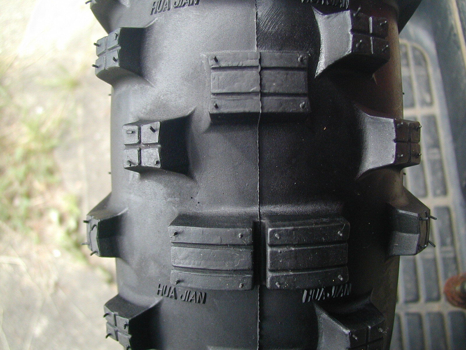 FIM規格だけでなく、エンデューロタイヤには、ゴムの柔らかいガミータイヤがあります。これはタイヤの接地面積を増やして、グリップを稼ぐタイヤです。ハードエンデューロでよく使われます。グリップはいいのですが、ゴムが柔らかいのであっという間に減ります。また、チューブのままだとパンクしやすいのでムースチューブを入れて使う場合もあります。ガミータイヤは履く場所を選ぶので、ご注意ください。