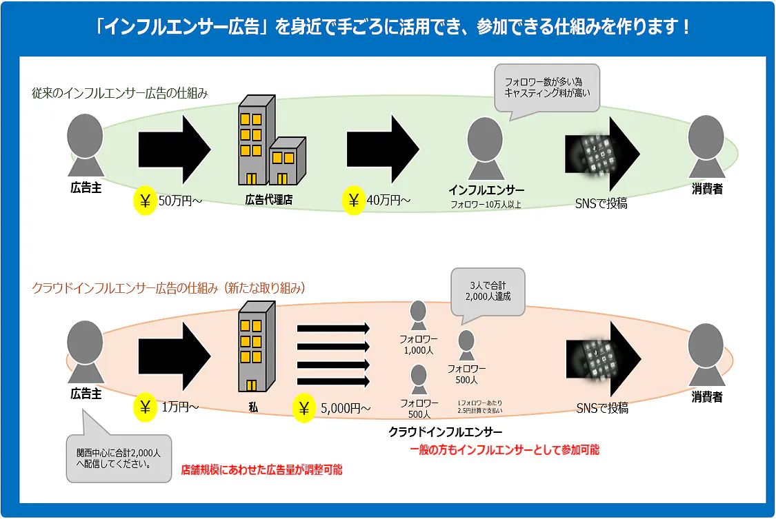 本プロジェクトのクラウドインフルエンサーサービスは、