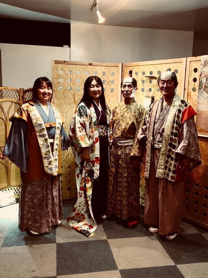 その後、同3月に八女福島文平座の舞台にて公演、5月に八女伝統工芸館で、調べた歴史データをパネル等で展示紹介した時代展時の中で演劇公演をし、2019年まで毎年恒例として行ってきました。