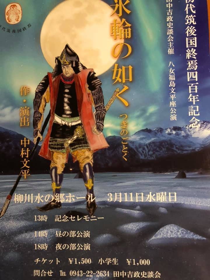 最初にこの演劇を通して、田中氏の時代の真実を伝えることを始めたのは、2015年2月22日に柳川市の料亭で、2月18日の田中吉政ご命日法要後の公演でした。
