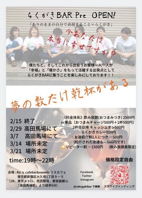 自分を表現できるコミュニティを作るなかで、オフラインで直接会える場所を作りたいという思いからバーを設立準備をしています。なんとしてもバーを立ち上げたいという想いで行動しています。