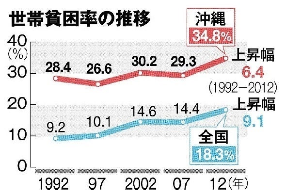 沖縄県は年間所得が全国46位と低く、子供の貧困率が全国1位、子供をもつひとり親家庭が50%にも