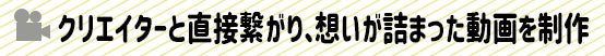 当プロジェクトは、プロの映像クリエイター、カメラマンが集まるオンラインサロン《動画プロデュース・ラボ》発祥です。クリエイターとお客様を直接つなぎ、中間マージンを徹底的に排除する事で、低価格ながらハイクオリティな動画制作を実現しました!