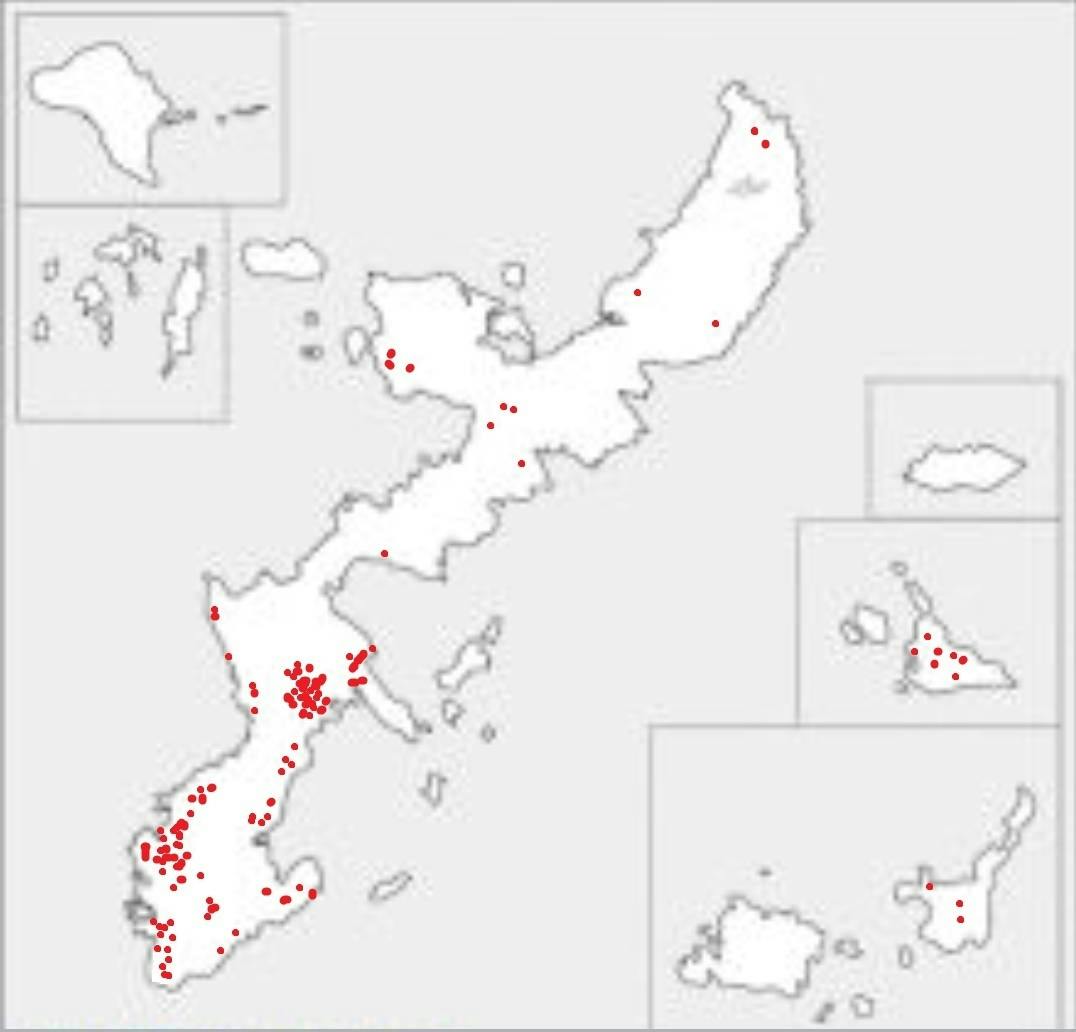 沖縄県全体でみると沖縄県南部地域にはまだあるのですが、北部、中部地域にはまだまだないことが分かります。