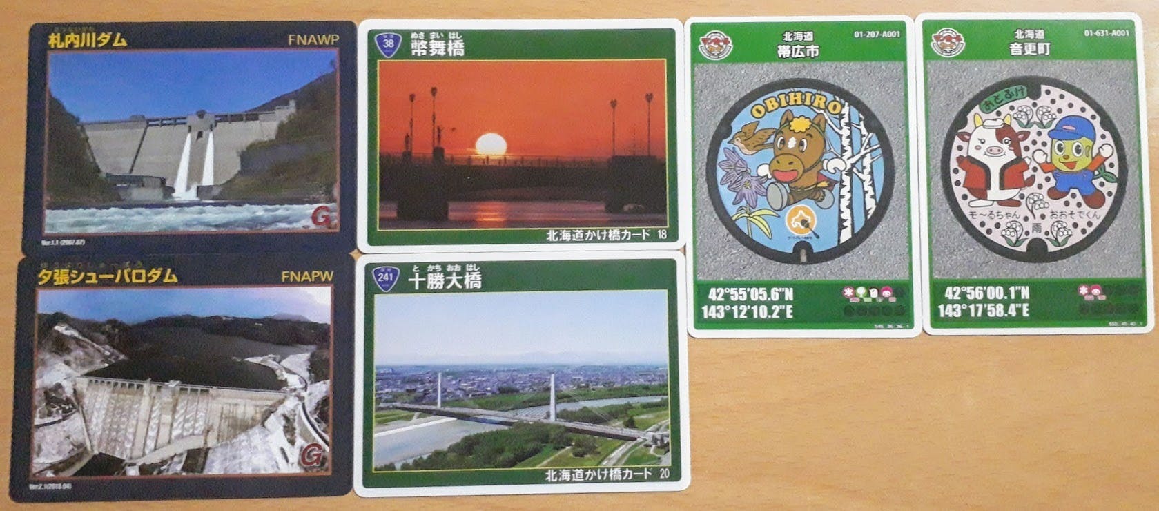 ダムカード、マンホールカード、北海道かけ橋カード、北海道先人カード、北海道選奨土木遺産カード・・・