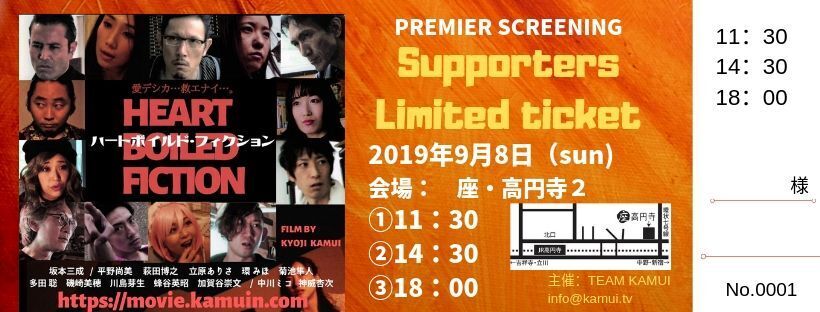 ・東京プレミア上映会の後、大阪プレミアが行われた場合はご招待(現時点で開催の方向で考えております。2020年8月頃には開催の有無または状況を発表致します。)
