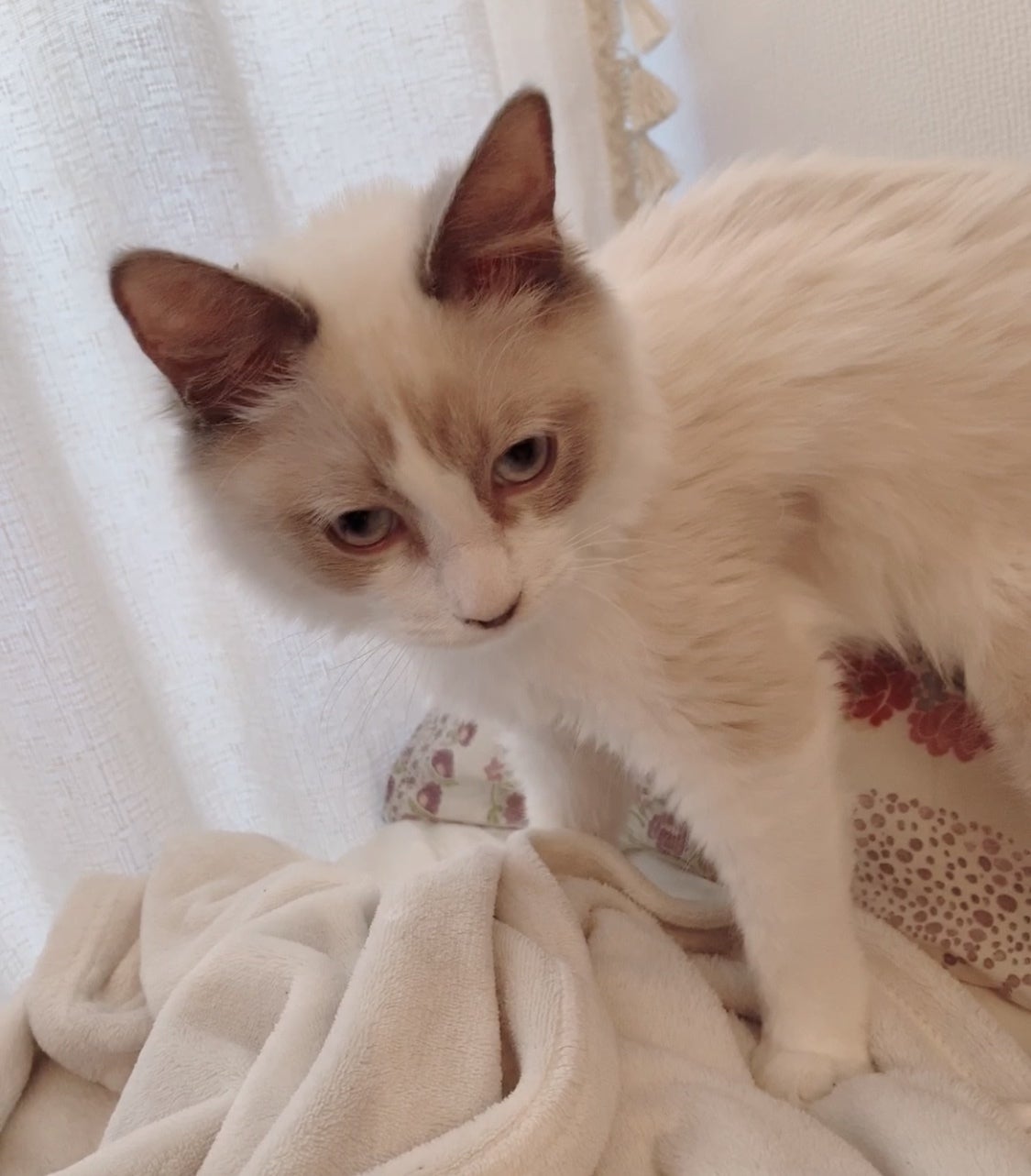 多頭飼い環境で生活を始めたmoku、すぐに鼻水や目のショボつき等の風邪のような症状が出たそうです。
