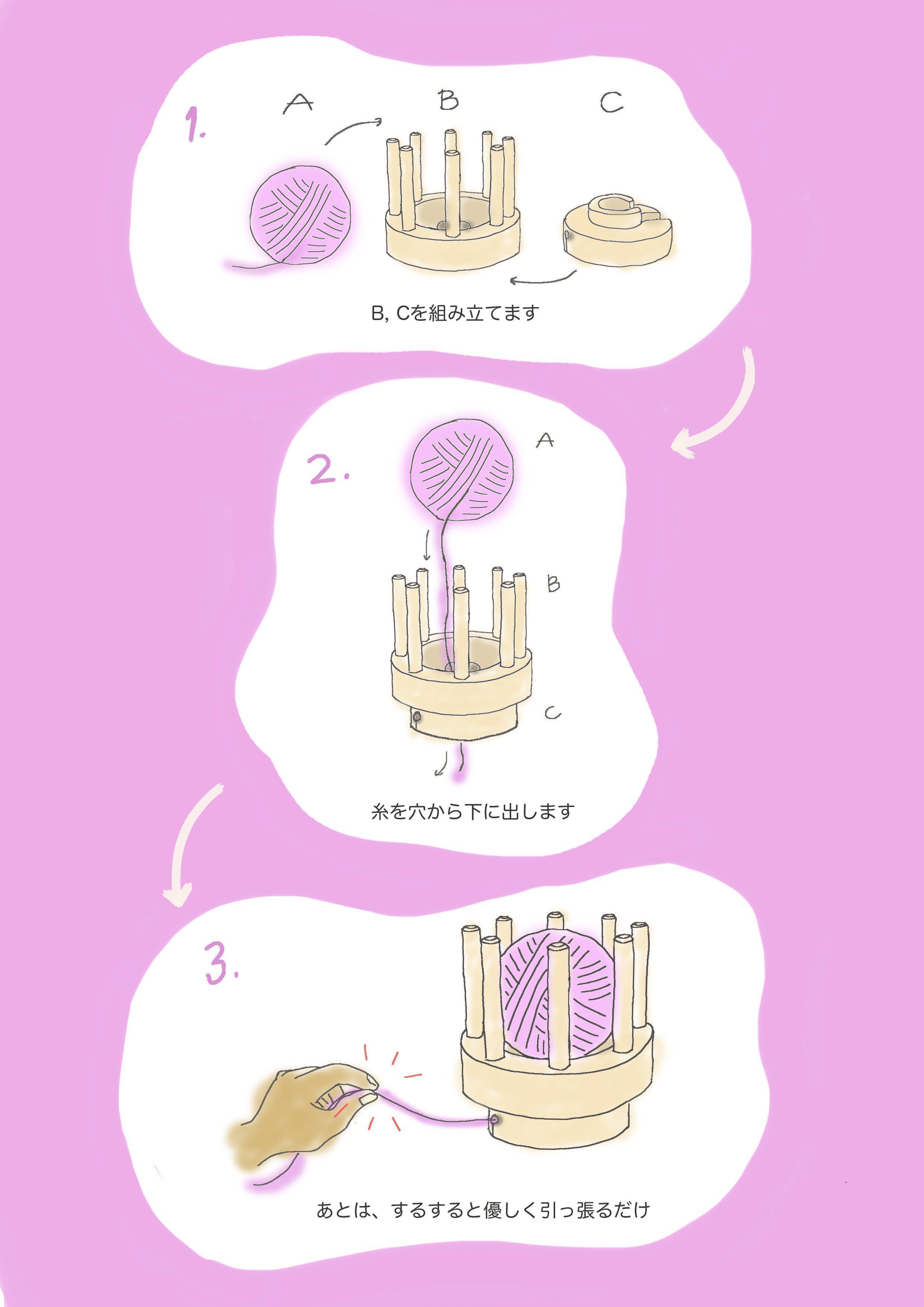 しかし近年、手編み人口が減少しています。少しでも多くの人に糸の魅力を伝えたい。手芸業界を盛り上げたいとの思いで糸取り出し装置を開発し、このプロジェクトを立ち上げました。