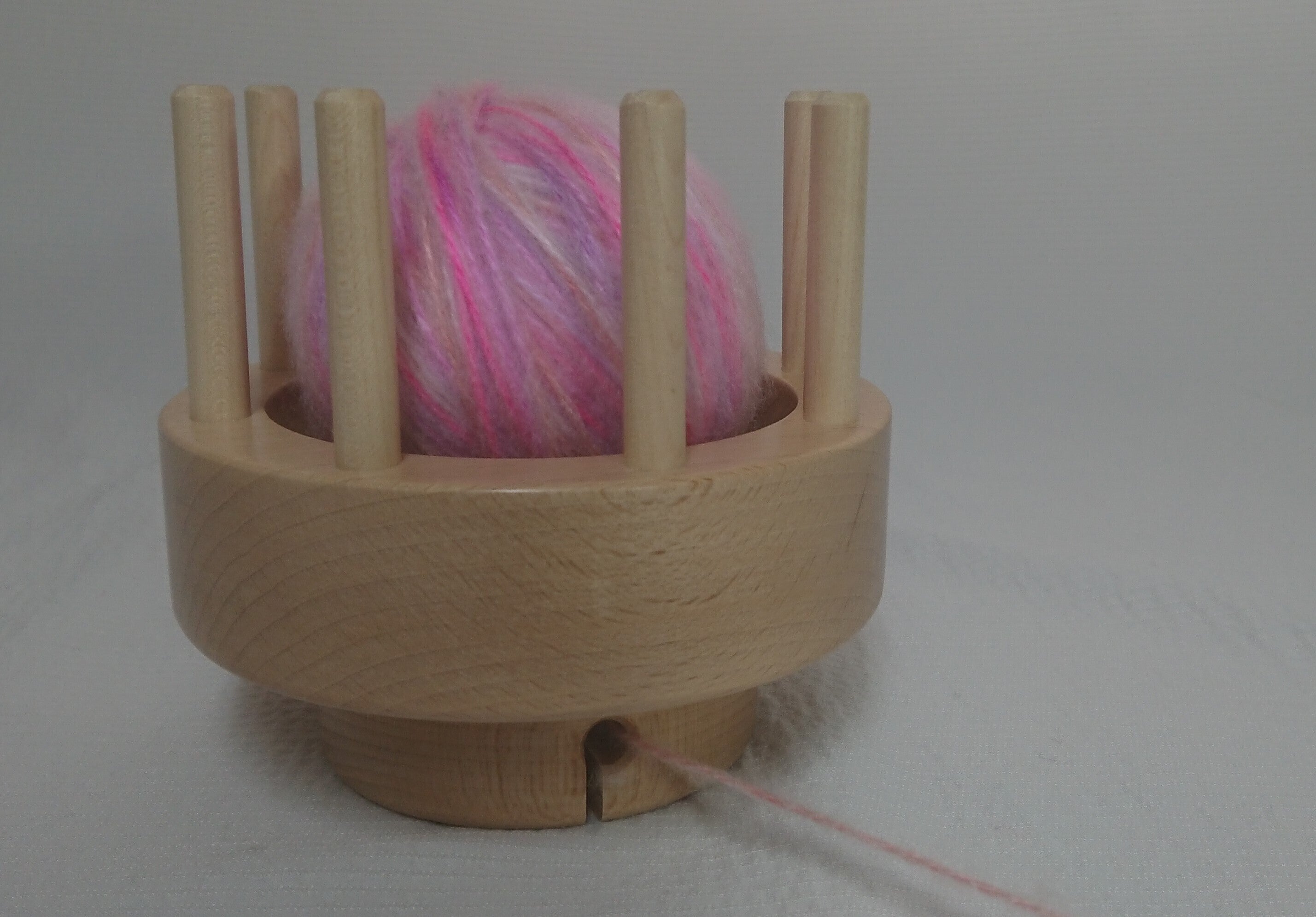 そんななか、当社自慢の回転バック(手芸糸用染色機)で染色した風合いの良い糸をもっともっと皆さんにお届けしたい!そこで、糸を使いたくなるきっかけになる物を作りたい!と思い、試作を重ね、今までにない新しいタイプの糸取り出し装置を開発しました。
