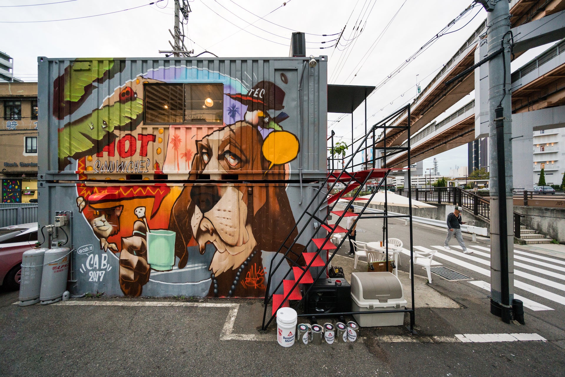 ・アーティストがミューラルアート作成時に使うスプレー缶への掲出