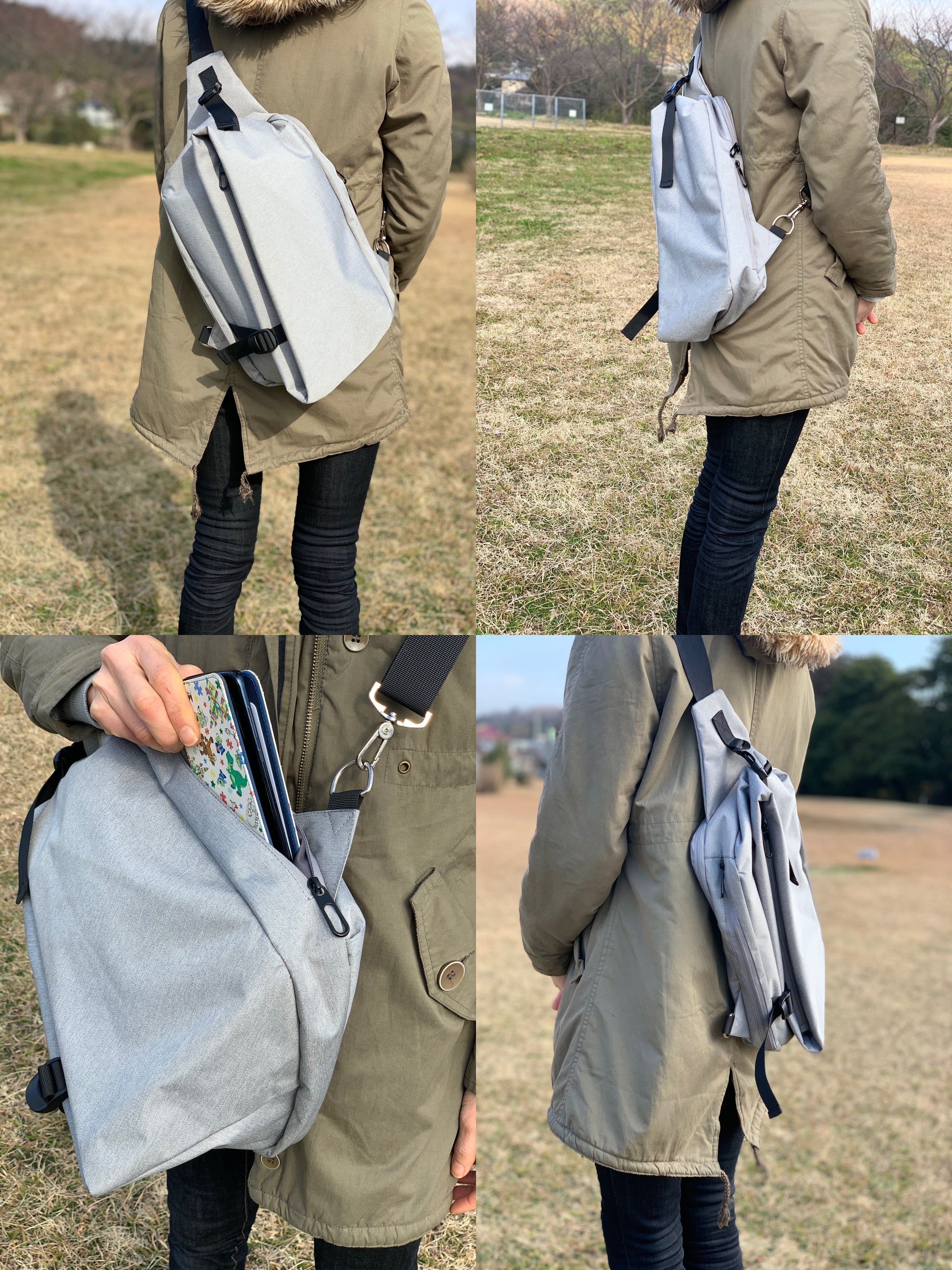 また、モニターになって頂いた多くの皆様ありがとうございました。 お子様のいる主婦の方からご好評を頂いたのが意外でした。 市販のボディバッグでは容量が少なすぎる。 リュックでは一度、下ろさないと使えない。 片手で荷物の出し入れができる大容量のボディバッグが欲しかった。 男性向けに開発したバッグが思わぬところで ご好評を頂いたことでスタッフ一同、 より一層、開発の励みになりました。