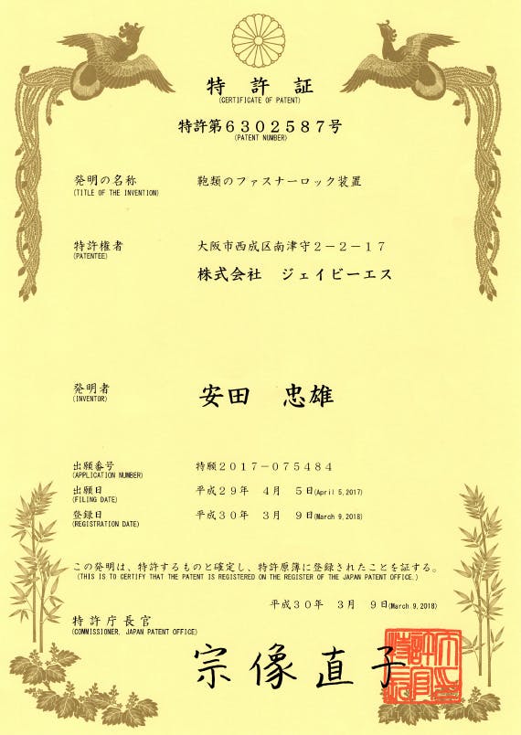 このファスナーは表裏二重構造になっておりピッキングによるこじ開けには特に耐久性が高く、突き上げに対しては一般的なファスナーの3倍の強度を保ちます。