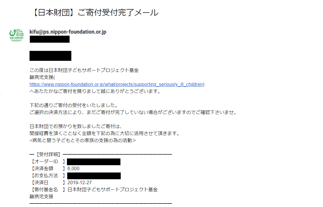 なお、このプロジェクトをするにあたって自分なりの心構えとして目標金額の2%を「日本財団子どもサポートプロジェクト基金 難病児支援」に寄付しました。
