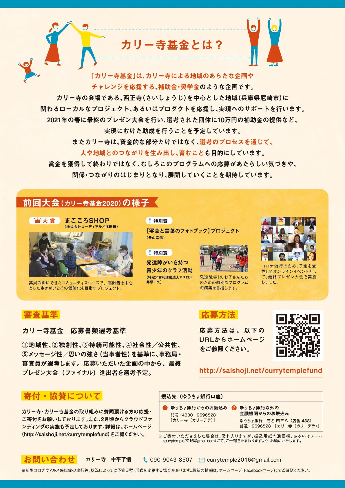 このカリー寺基金も2年目を迎えました。地域のつながりや、昨年の受賞者/ファイナリストの協力を得て、この取り組みもバージョンアップしています。このクラウドファンディングでも、その一端をご報告・ご披露していく予定でもあります。