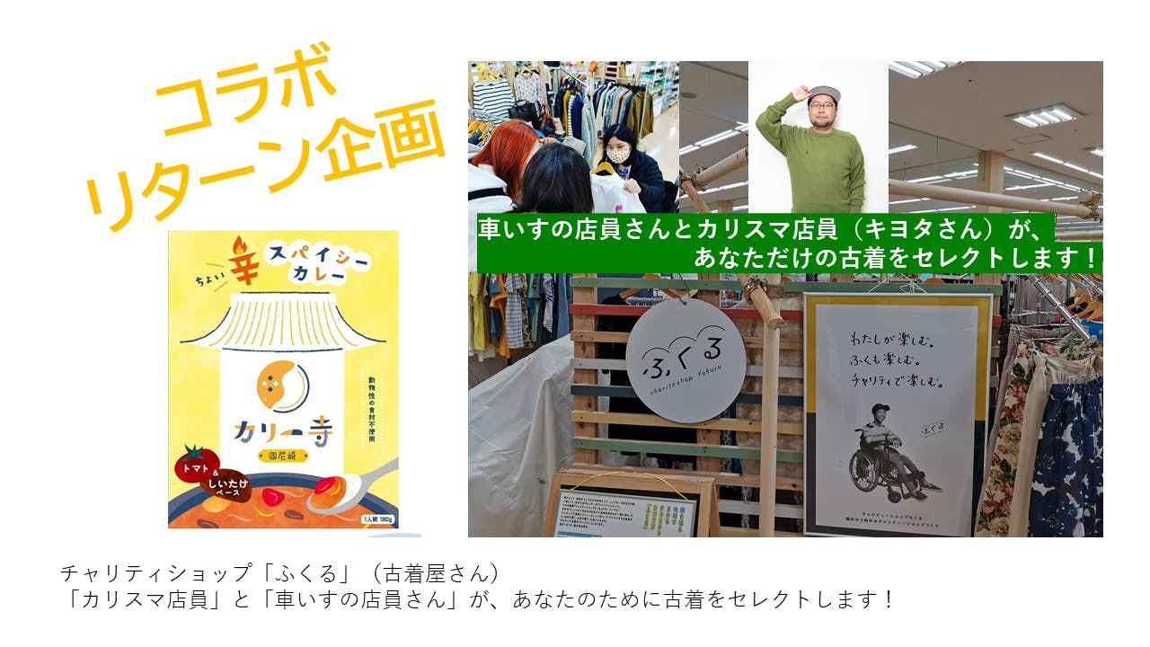 このリターンを購入いただくと、カリー寺だけではなく、チャリティショップさんの売り上げにもつながるという「コラボ」企画です。 ご協力いただけましたらうれしいです。
