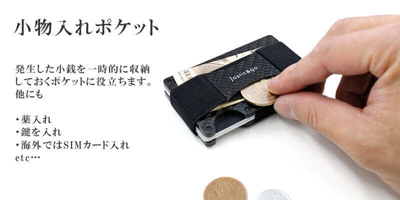 また、ゴムとLOGOプレートの間には、紙幣を使用して発生した際の小銭数枚を収納することが可能です。