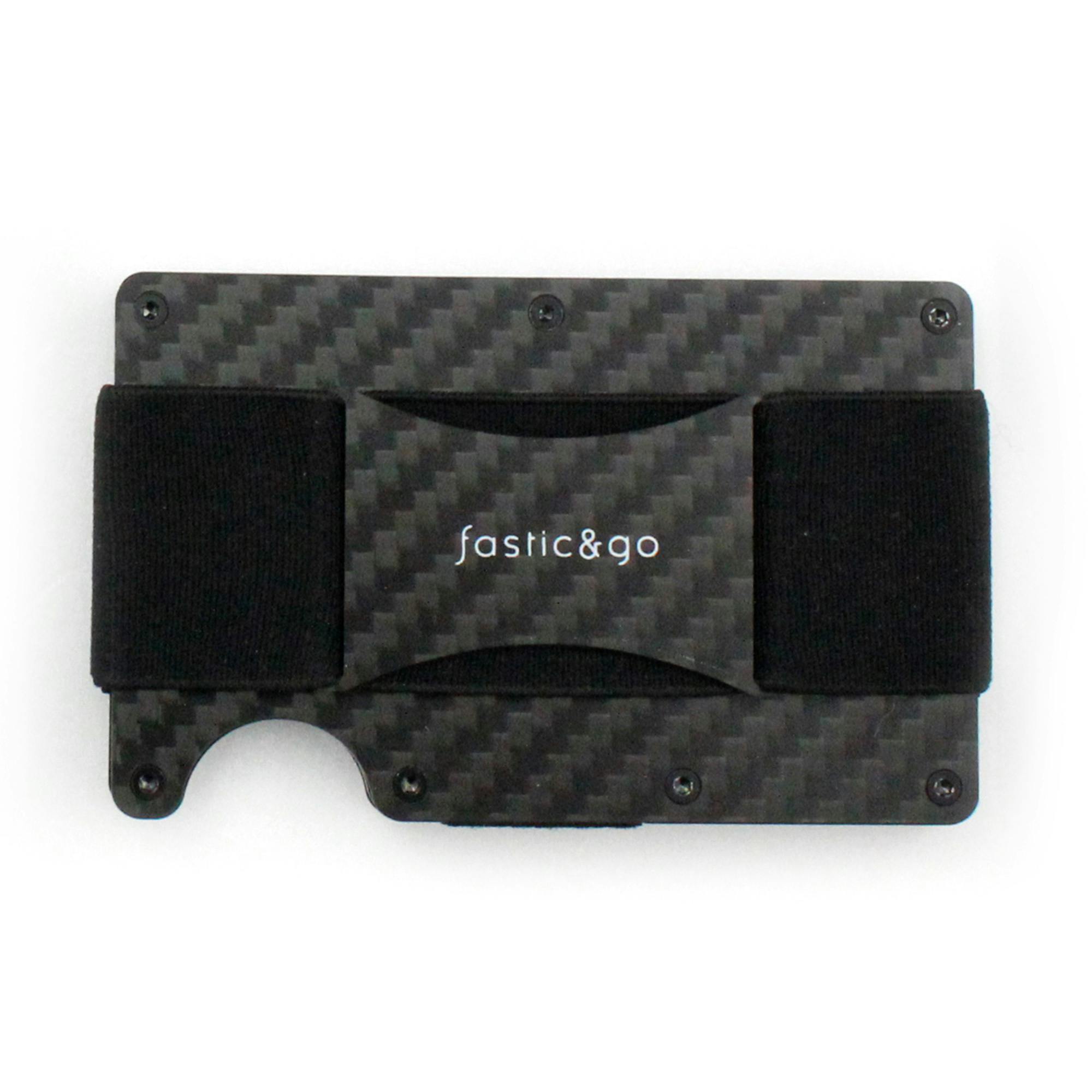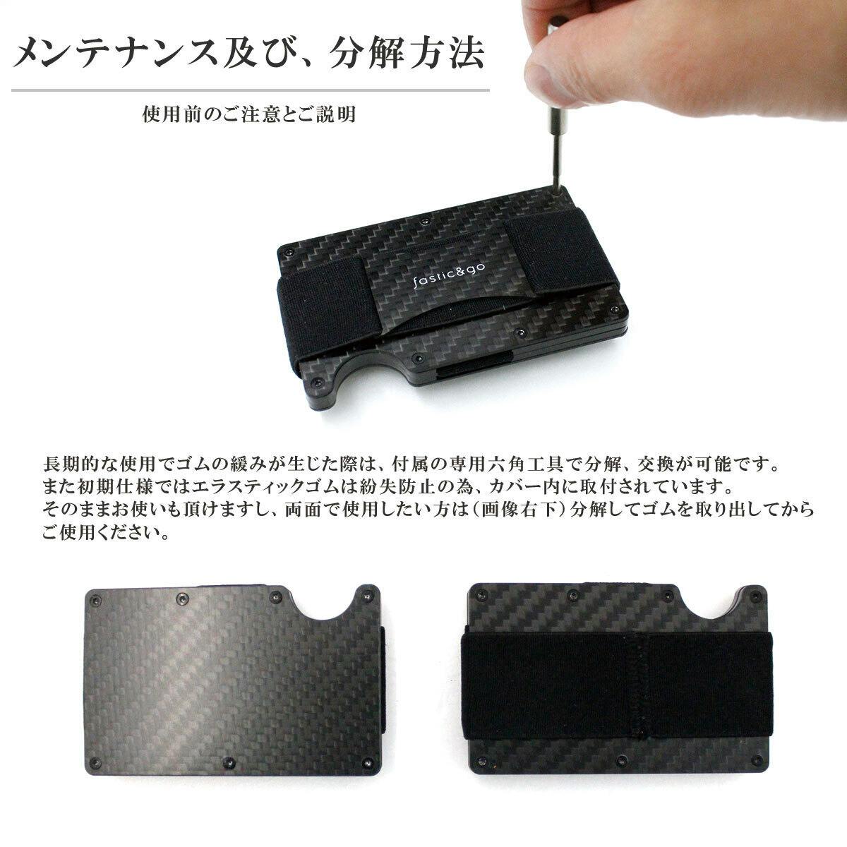 背面のエラスティックゴムを利用したカーボンファイバーマルチウォレット背面の使用例