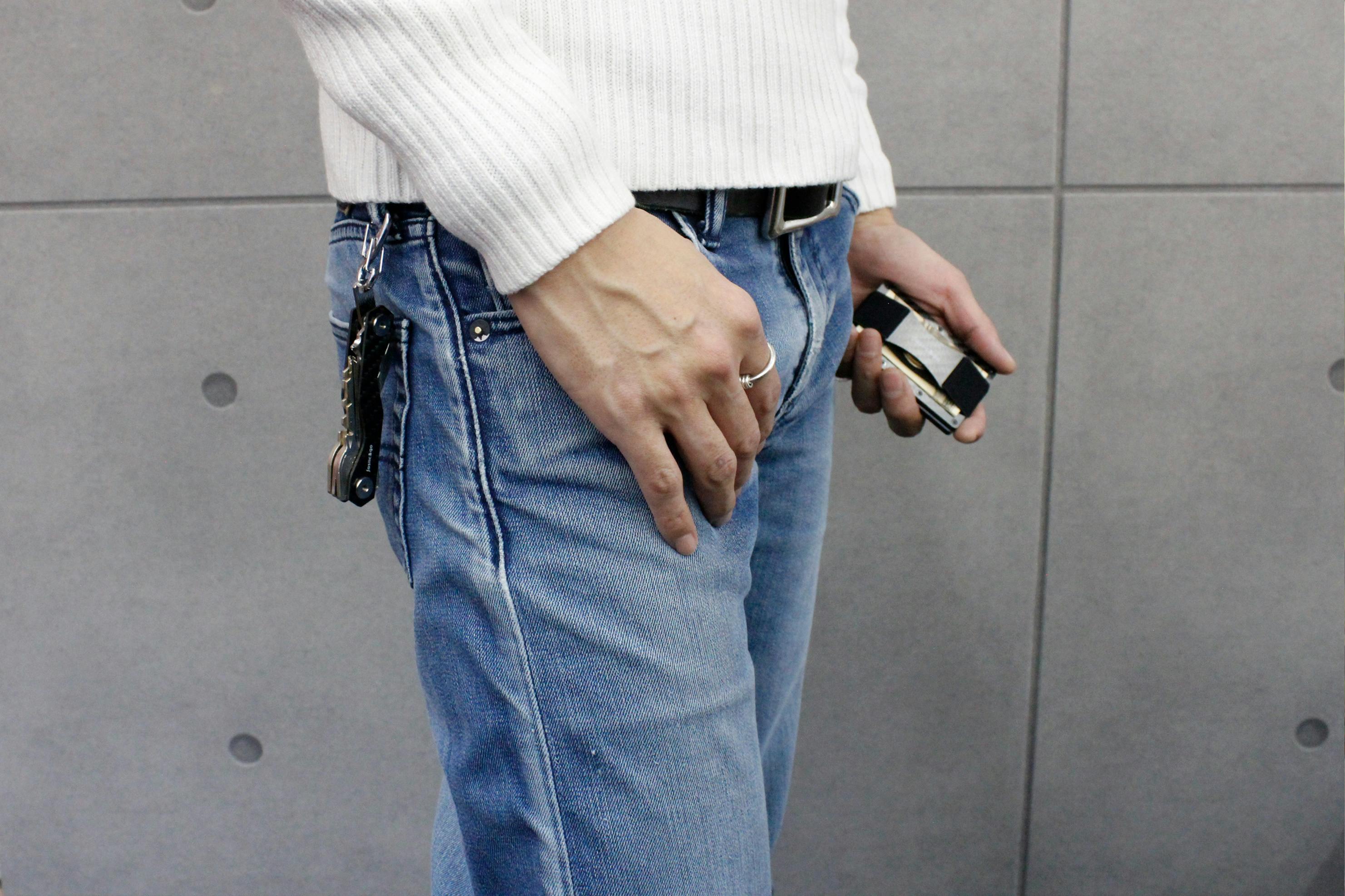 パンツのポケットをパンパンにすることなく鍵もスマートに装備!