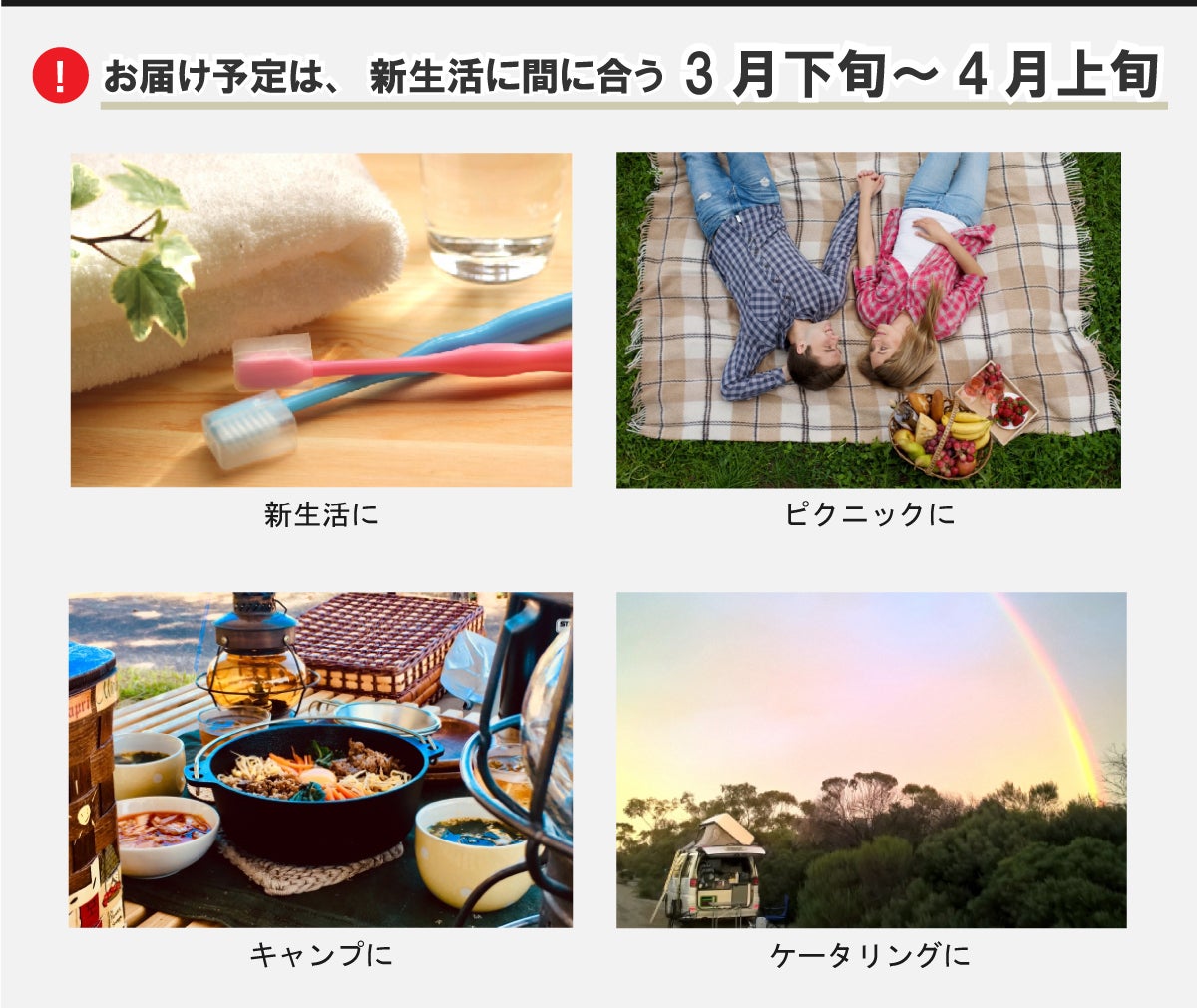 新生活や、春のお出かけに!3月下旬~4月上旬のお届け予定です。生産状況により皆様へのお届けが多少遅れる場合がございます。