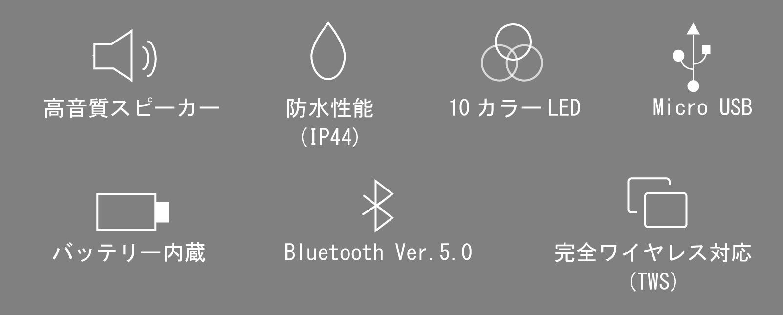 Bluetooth Ver. 5.0に対応した高音質スピーカーで、自宅はもちろんホームパーティーや、アウトドアなどの外遊びにも活躍の場が広がります。