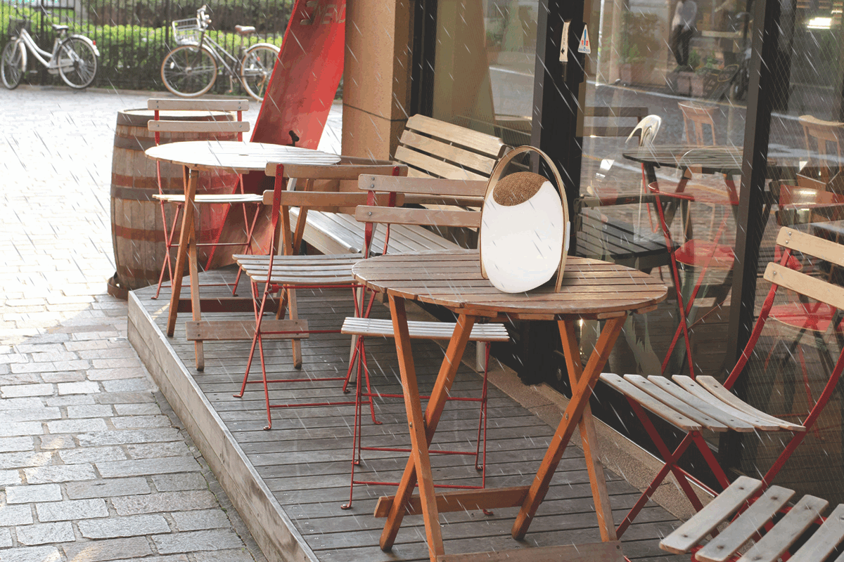 IP44の防水(防滴)仕様。突然雨にふられて慌てなくても大丈夫。アウトドア中はもちろん、テラスや庭先にも安心して使えます。