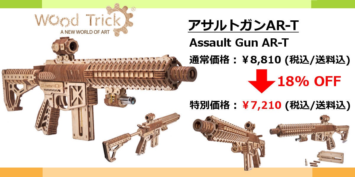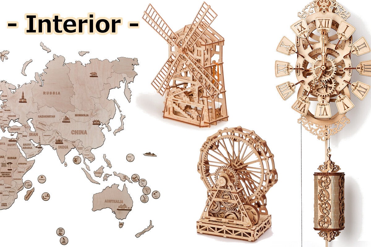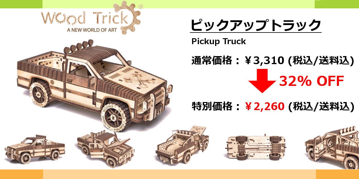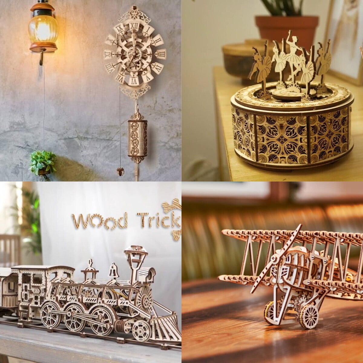 Woodtrickはウクライナの木製3D/立体パズルのメーカーです。美の国ウクライナに似合う美しい木の模型を製造・販売しています。モデルの種類は多岐に上り、お部屋のインテリアになるオルゴールや壁掛け時計からゴムの力で走る車や機関車、木の弾を飛ばすガンなど年齢・性別を問わず楽しんで頂けるモデルばかりです。