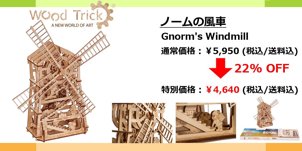 そしてウッドトリックの製品は大人向けだけでなく若い方々や更に大人の助力の元で小さなお子様にも楽しんで頂ける事を目指しています。また、個人の方々だけでなく家族やお友達と知恵を出し合って工夫してつくる事によって、出来上がった時にみんなで大きな達成感が味わえます。特にお子様にとってはエンジニアリングの世界へのきっかけとなる事でしょう。ウッドトリックの3Dパズルはヨーロッパや北米南米、アフリカやアジアで既に多くの人達に楽しまれています。現代社会の至る所で子供の親たちは思春期の子供たちの成長を願っており、ウッドトリックの模型は、子供たちが没頭してしまいがちなタブレットなどから遠ざけ、家族たちで一緒に楽しむことができて子供たちの脳の発達に貢献します。そういった発達は根本的なメカニズムや根気強さ、集中力や芸術的で想像的な考えから生まれるものです。