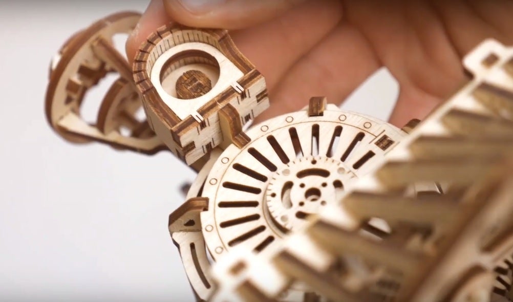 その上、ウッドトリックの多くのモデルはゴムの力で自走したり動かしたり、オルゴールが付いていたり実際に動く時計のモジュールが付いていて置時計や掛け時計になったりと、観賞用のインテリアだけではなく実用的に扱うことが出来ます。