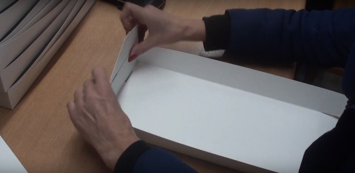 パッケージも工場内で制作。折りたたんで商品を中に入れます。