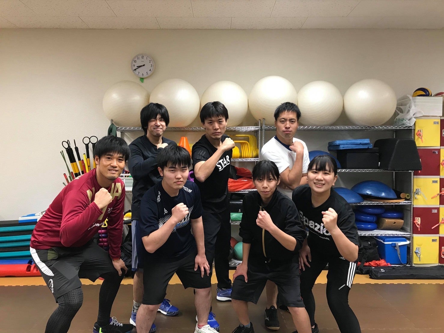 スポーツアライアンスの方々、帝京大学宇都宮の剱持先生、トレーナー課程の仲間とともに。