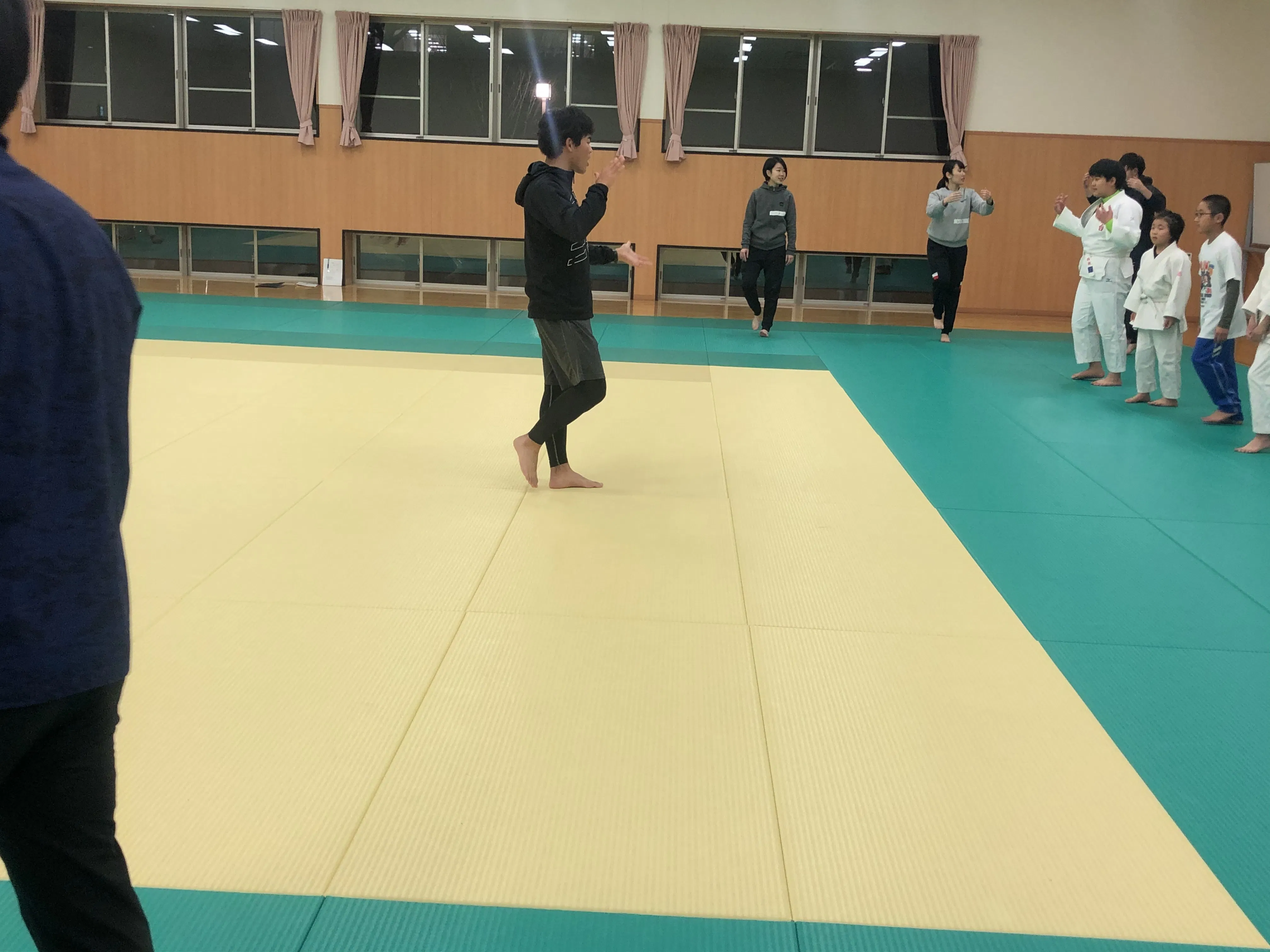 本日は、大学の横にある柔道場にて小学生を対象に関節可動域の測定、W-up、最後は小学生、親御さんを対象に「食事の大切さ」をテーマに発表を行いました。今回のニーズがお菓子ばかり食べている子がいたり、ご飯をしっかり食べない子がいるのでご飯を食べることの重要性について話してほしいというものでした。小学生にも分かりやすいように作りましたが、低学年には少し難しくなってしまいました。対象全員に分かりやすく伝えることは大変だと実感しましたが、改善点がいくつも見つかったので伝え方を工夫したいと思います。
