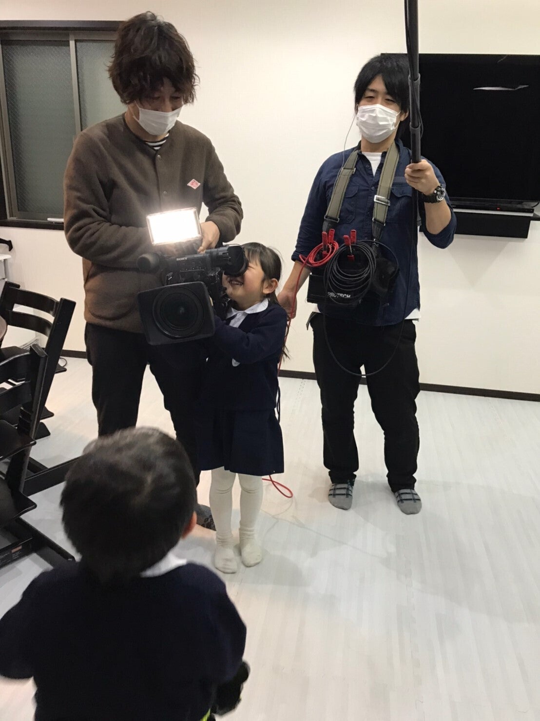 子どもたちとのやりとりや、まりのインタビューなどの撮影をしてもらいました。