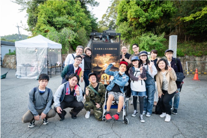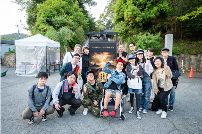 ▲みんなで行った満願寺の光る絵本展(長い階段をマッチョに抱えられて登りました)