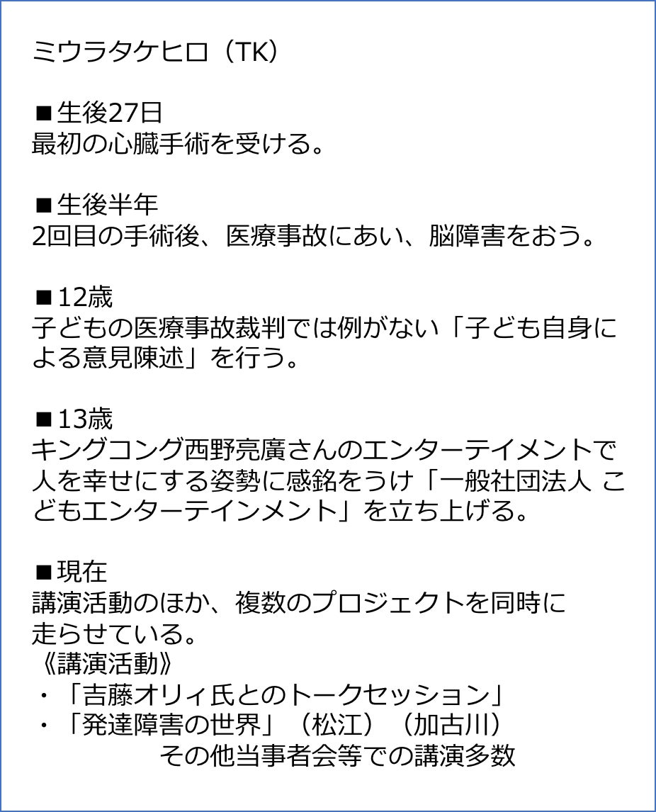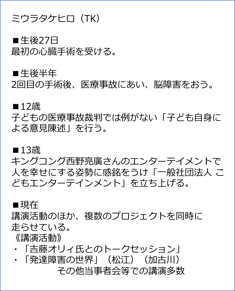 ミウラタケヒロことTKと申します。