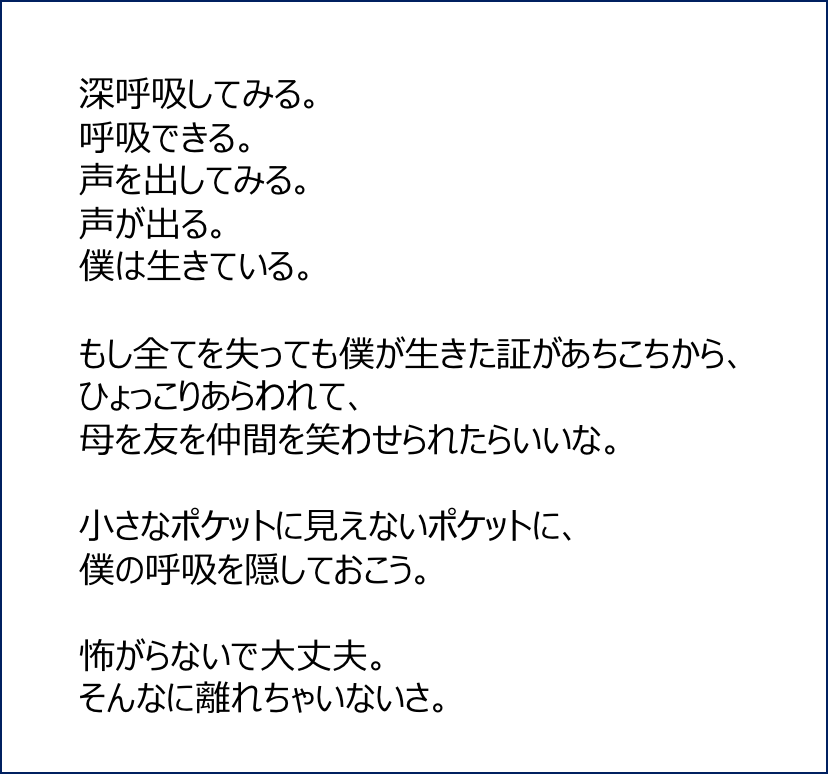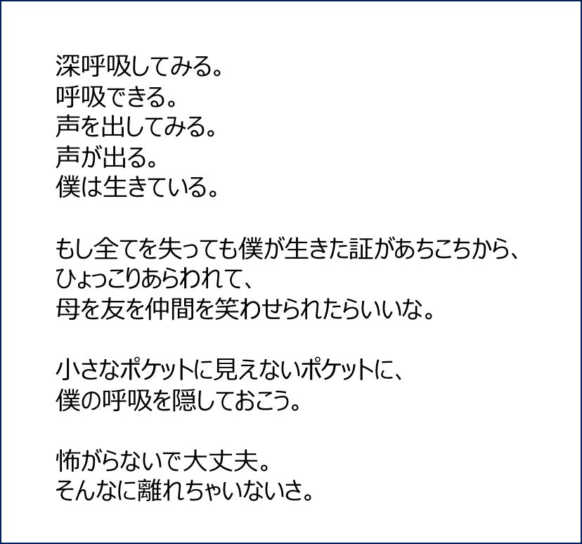 この本に書かれている僕のことや言葉が誰かの力になったらいいな。