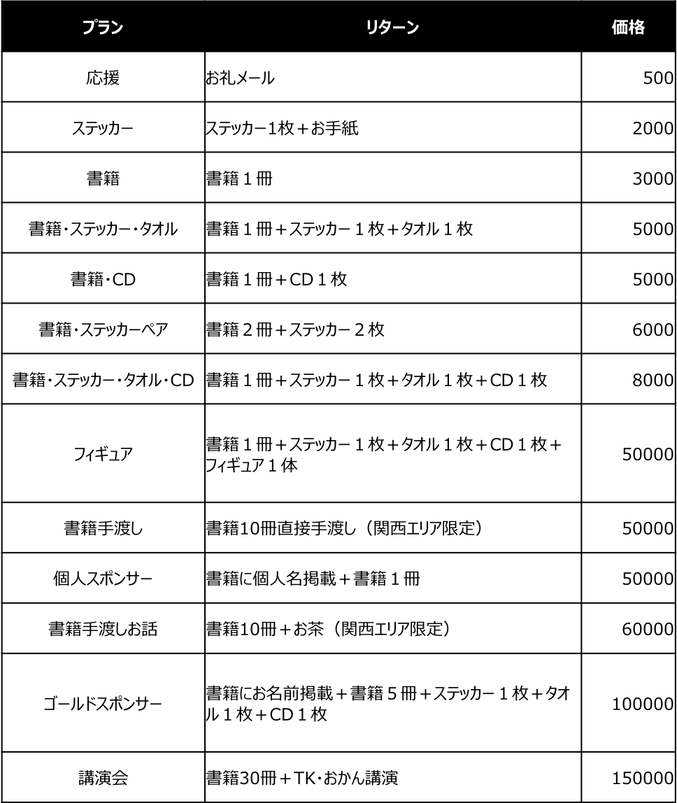 リターンとして、書籍以外にもオリジナルグッズをお送りするプランや