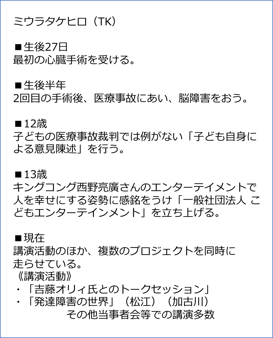 TKは、人よりも短い可能性が高い自身の命をどのように使うか、