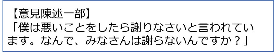 また、12歳の時には、子どもの医療事故裁判では例がない「子ども自身による意見陳述」も行いました。