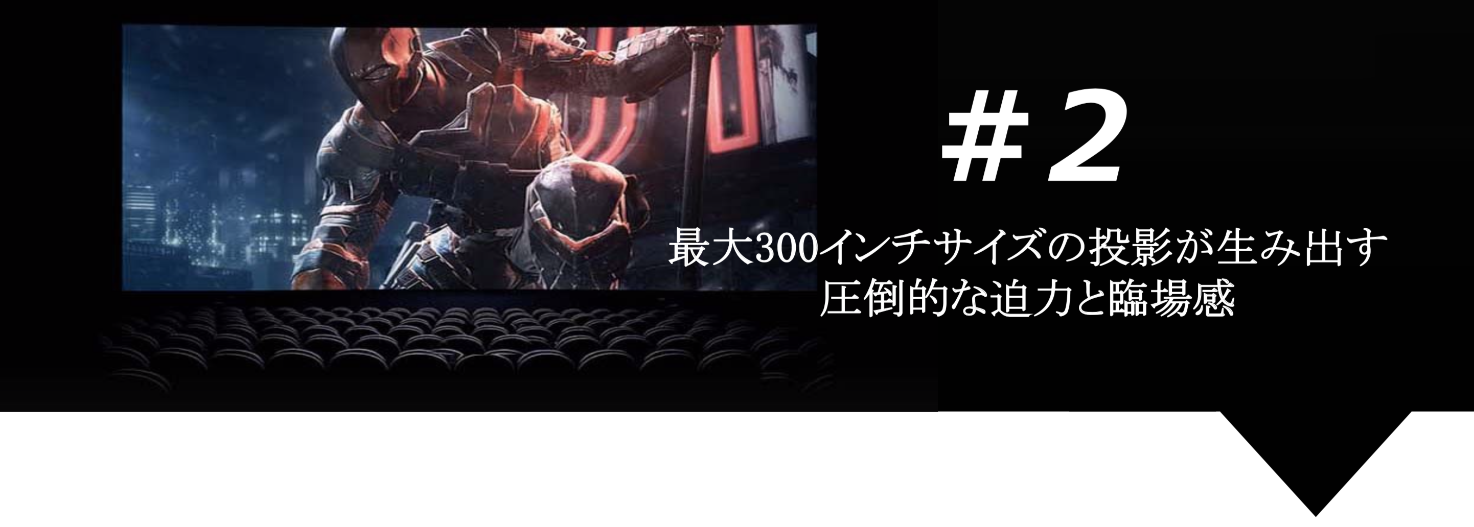 ①はフィルターを通じて使わない色成分を捨てることで光の使用効率が悪いというデメリットに対し、②はダイレクトに投影することで全ての光成分を使用しますので非常に効率的で、鮮明な投影になります。