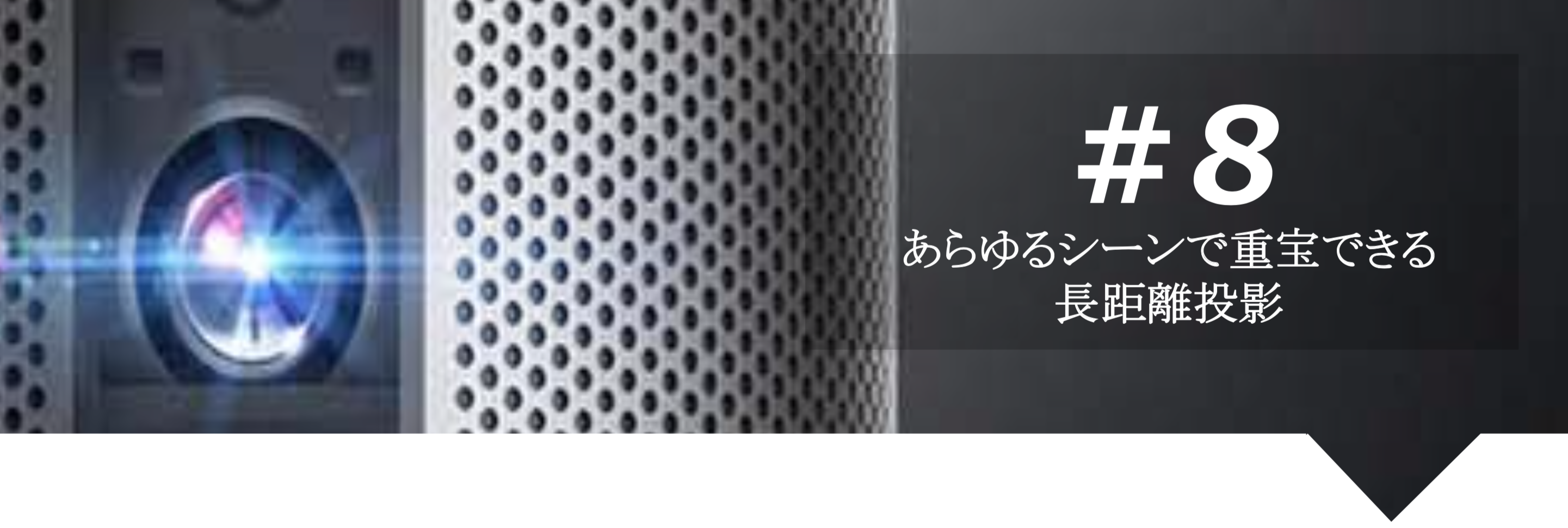 従来の家庭用プロジェクターの最大投影距離は、3m前後が一般的でした。「響輝」は1mから8mの距離で投影することができます。つまり、ご自宅だけではなく、大きな会議室、アウトドア、イベント会場、様々な場所でご使用いただけます。