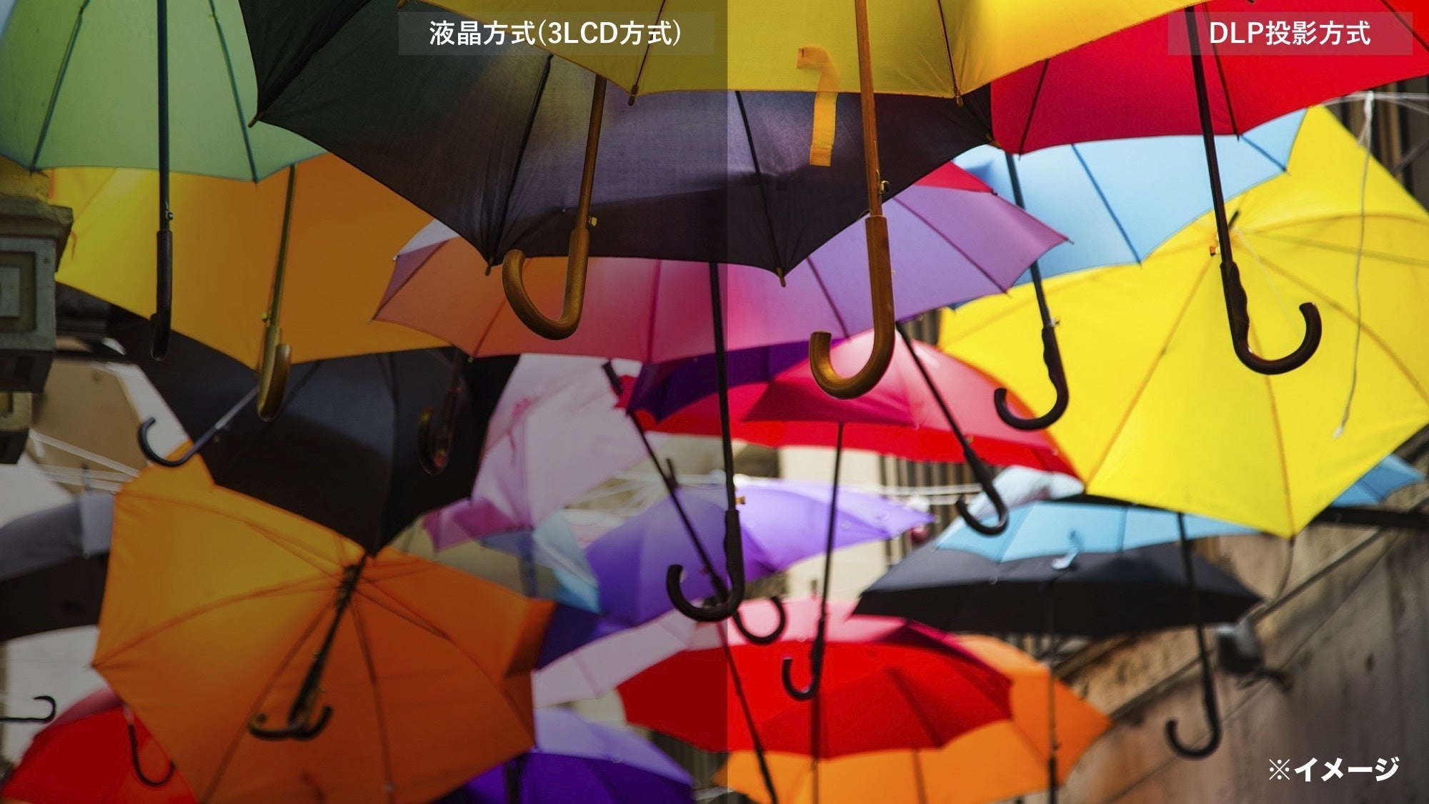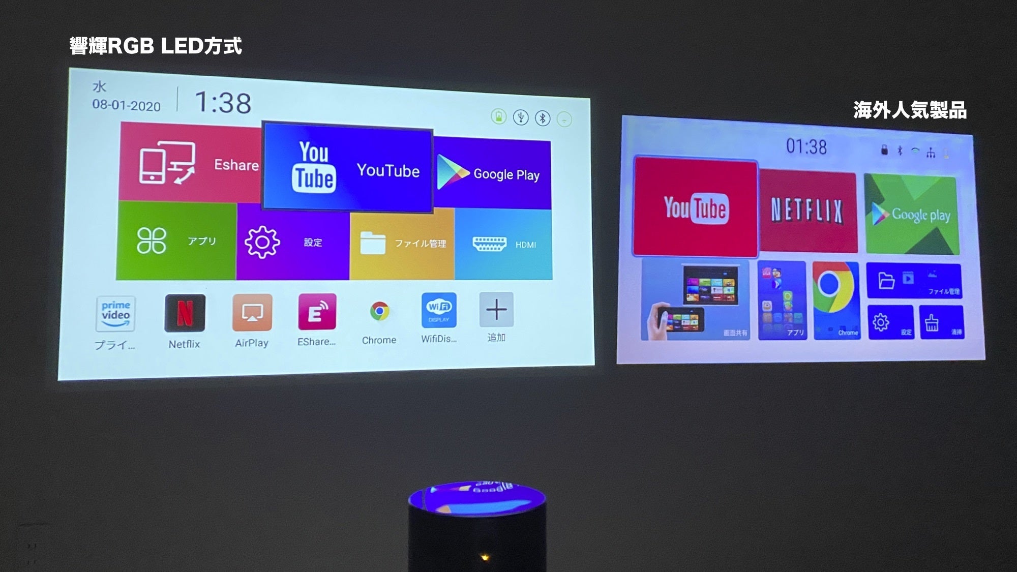 従来の家庭用プロジェクターの画質を実際に比較してみました。驚くほどの結果ですので是非ご覧ください。左側が「響輝」になります。