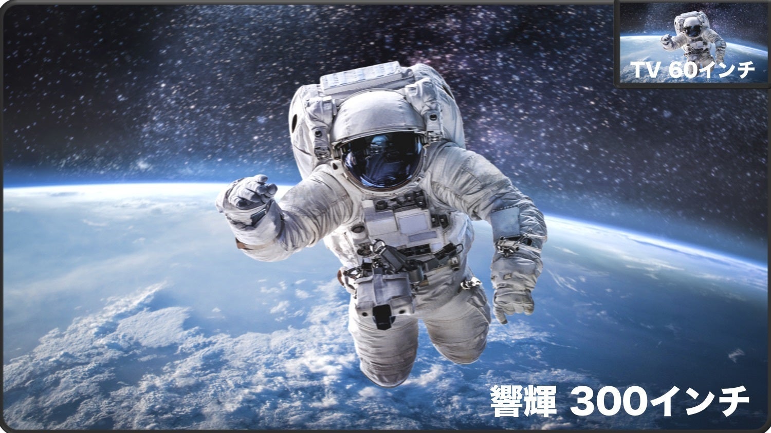 従来の家庭用プロジェクターの投影は最大100-180インチサイズが一般的です。「響輝」は、最大300インチの投影が可能です。ご自宅の壁一面を水族館のようにすることもできます。今までにない圧倒的な迫力と臨場感を体験してみませんか?
