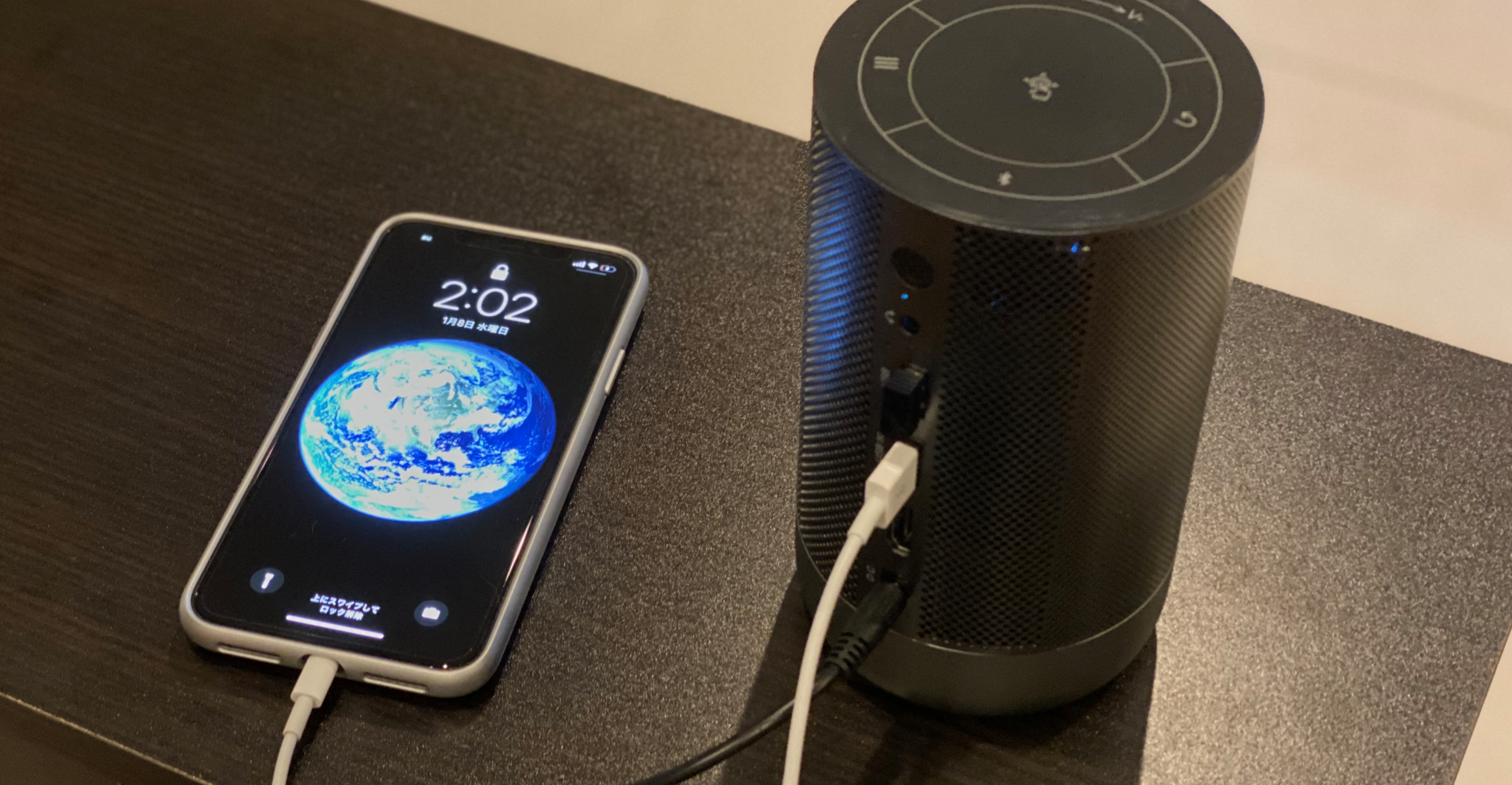 つまり、投影しながら同時にスマートフォンを充電するといったことが可能です。