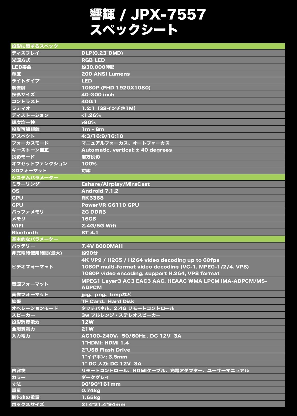 「響輝」はフルハイビジョン(1920*1080p)です。その差は歴然です。また、4K動画や3D動画(3Dメガネが必要)など、様々なフォーマットをサポートしています。